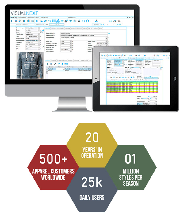 Built by a team of fashion industry experts and enriched over the last 20 years with significant key user inputs and validations, Visual Next is the most sought after ICT solution for apparel, textile, accessories and footwear manufacturers world wide.
