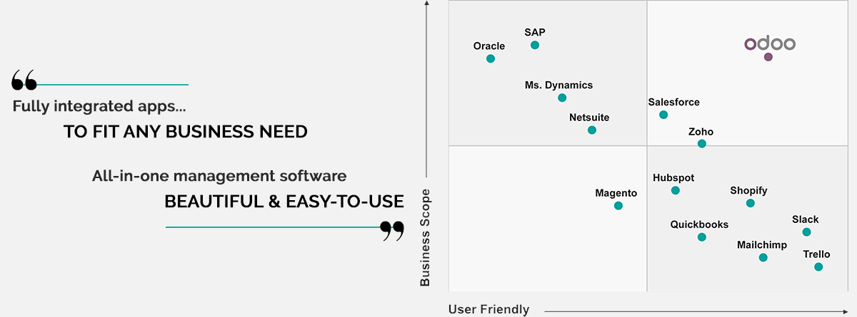 With 30 main modules and over 10,000 applications developed by the Odoo community, Odoo covers all your business needs in a one-stop shop solution. Businesses can purchase apps that they currently need and gradually add on modules as the business needs grow.